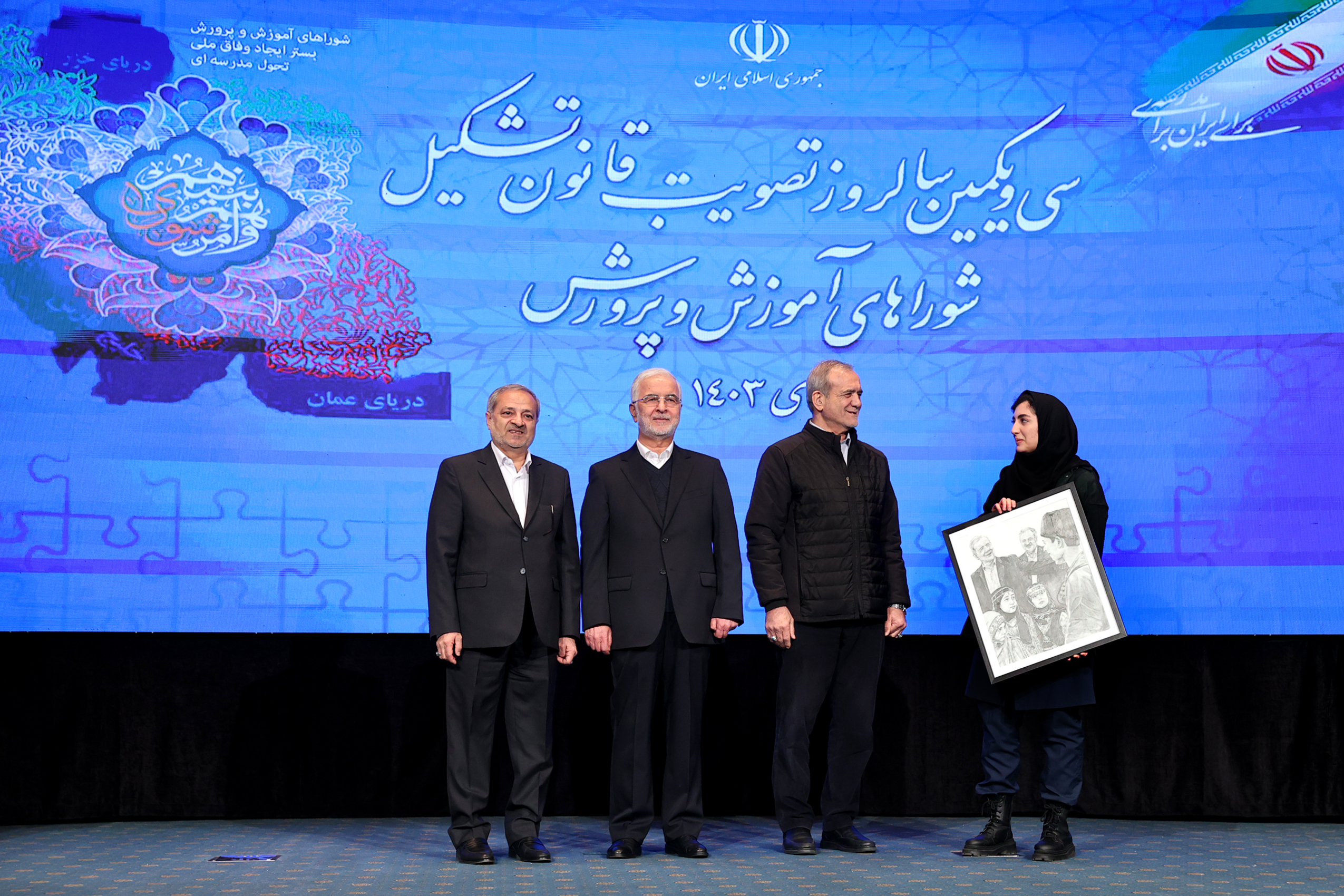 به گزارش پایگاه اطلاع‌رسانی دکتر پزشکیان، آیین گرامیداشت سی و یکمین سالروز تصویب قانون تشکیل شوراهای آموزش و پرورش با شعار شوراهای آموزش و پرورش بستر ایجاد وفاق ملی تحول مدرسه‌ای صبح امروز دوشنبه با حضور دکتر مسعود پزشکیان رئیس جمهور، در مرکز همایش های بین اللمللی صدا و سیما برگزار شد.همچنین رئیس جمهور در بخش دیگری از این مراسم، با اهدای لوح تقدیر از استان‌های برتر در ارزیابی شوراهای آموزش و پرورش تجلیل به عمل آورد.