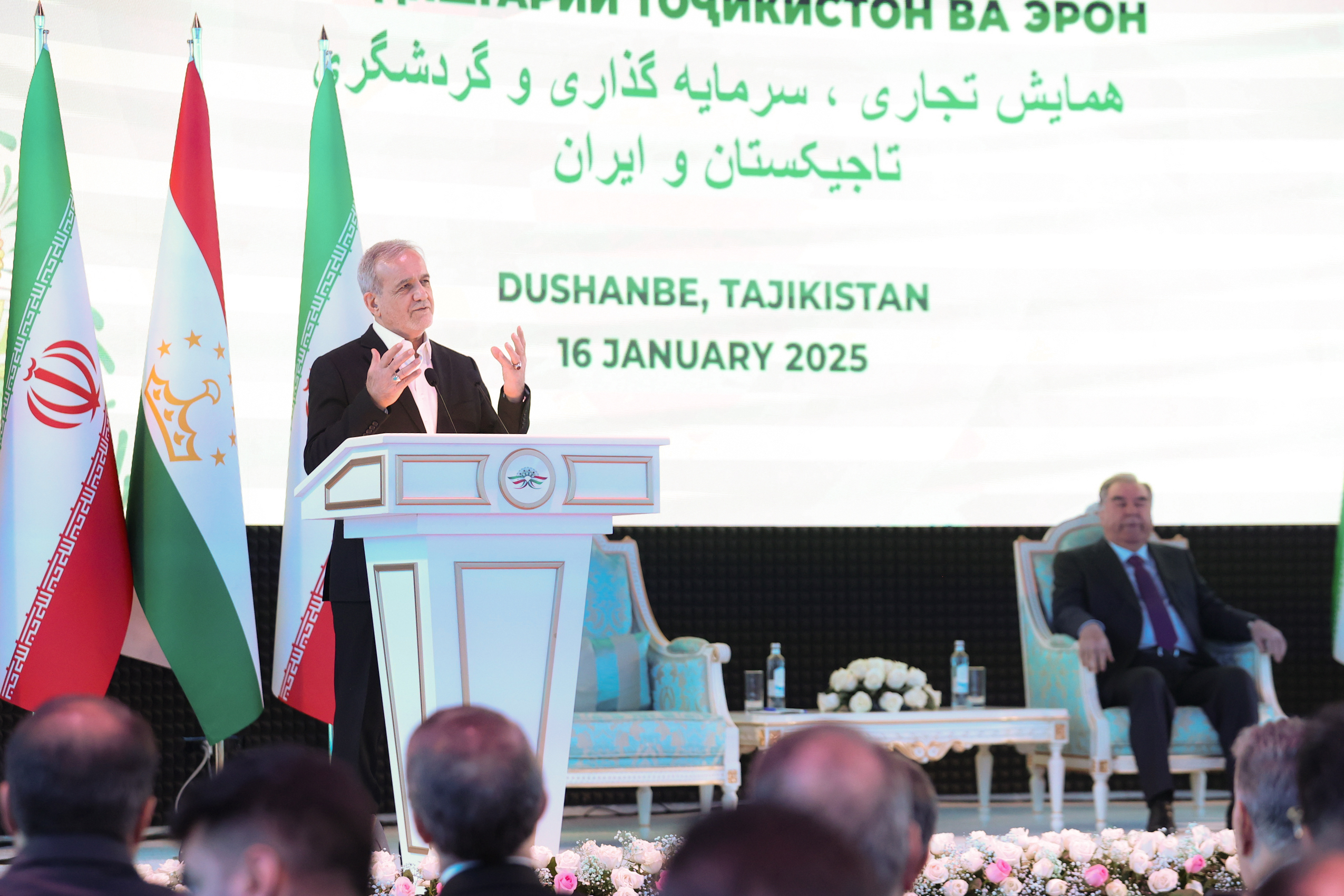 انتشار : پنجشنبه ۲۷ دی, ۱۴۰۳ | ساعت: ۱۶:۱۷ همایش تجاری، سرمایهگذاری و گردشگری اشتراک دکتر مسعود پزشکیان در ادامه برنامههای سفر به تاجیکستان، بعد از ظهر امروز پنجشنبه به وقت محلی، در همایش تجاری، سرمایهگذاری و گردشگری ایران و تاجیکستان به همراه رئیس جمهور تاجیکستان شرکت نمود و به ایراد سخنرانی پرداخت. بدون دیدگاه دیدگاهتان را بنویسید لغو پاسخبرای نوشتن دیدگاه باید وارد بشوید. آخرین مطالب بازدید رئیس جمهور از نمایشگاه فناوریهای روز آمد ایران چهارشنبه ۱۴ آبان, ۱۴۰۴ | ساعت: ۱۲:۳۱ بزرگداشت شهدای اقتدار سه شنبه ۱۷ تیر, ۱۴۰۴ | ساعت: ۱۶:۵۵ نشست رئیسجمهور با مسئولان استان گیلان سه شنبه ۱۷ تیر, ۱۴۰۴ | ساعت: ۱۷:۲۲ بازدید میدانی از مجتمع بندری آستارا سه شنبه ۱۷ تیر, ۱۴۰۴ | ساعت: ۱۷:۱۵ گفتوگو با «تاکر کارلسون» خبرنگار آمریکایی دوشنبه ۱۶ تیر, ۱۴۰۴ | ساعت: ۱۳:۴۸ حضور در آئین شام غریبان مسجد اوچدکان اردبیل دوشنبه ۱۶ تیر, ۱۴۰۴ | ساعت: ۱۲:۵۱ حضور در نماز ظهر عاشورا در مصلی امام خمینی (ره) تبریز یکشنبه ۱۵ تیر, ۱۴۰۴ | ساعت: ۱۸:۵۴ اقامه نماز ظهر عاشورا در مصلی تبریز یکشنبه ۱۵ تیر, ۱۴۰۴ | ساعت: ۱۳:۵۴ مراسم عزاداری تاسوعا یکشنبه ۱۵ تیر, ۱۴۰۴ | ساعت: ۱۹:۳۶ بازگشت دکتر پزشکیان از جمهوری آذربایجان جمعه ۱۳ تیر, ۱۴۰۴ | ساعت: ۱۹:۴۳ دیدار رؤسای جمهور ایران و ترکیه جمعه ۱۳ تیر, ۱۴۰۴ | ساعت: ۱۵:۱۵ دیدار رؤسای جمهور ایران و آذربایجان جمعه ۱۳ تیر, ۱۴۰۴ | ساعت: ۱۵:۲۲ هفدهمین اجلاس سران کشورهای سازمان همکاریهای اقتصادی اکو جمعه ۱۳ تیر, ۱۴۰۴ | ساعت: ۱۵:۲۷ دیدار نخستوزیر پاکستان با رئیسجمهور جمعه ۱۳ تیر, ۱۴۰۴ | ساعت: ۱۱:۰۷ دیدار رؤسای جمهور ایران و تاجیکستان جمعه ۱۳ تیر, ۱۴۰۴ | ساعت: ۰۹:۲۳