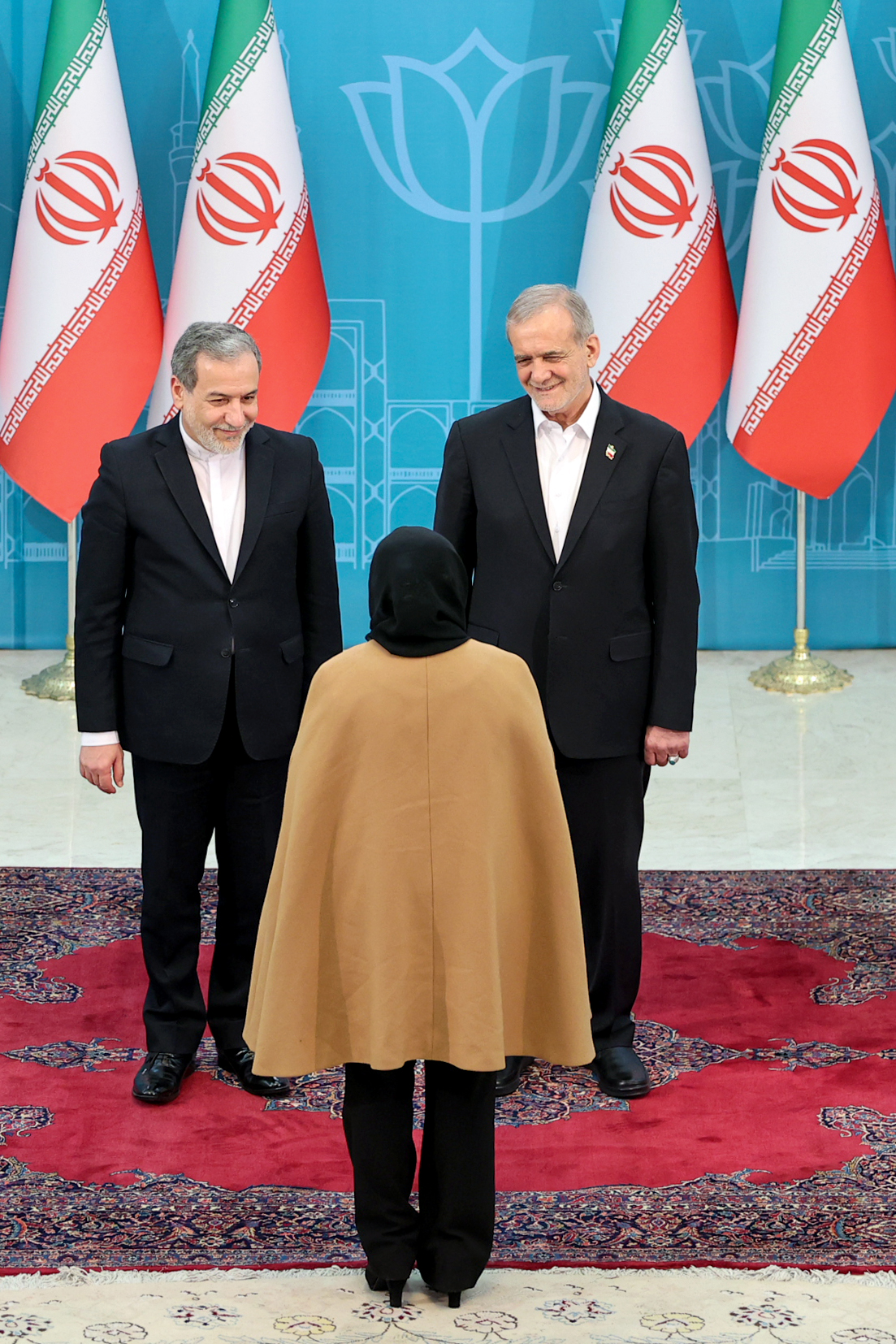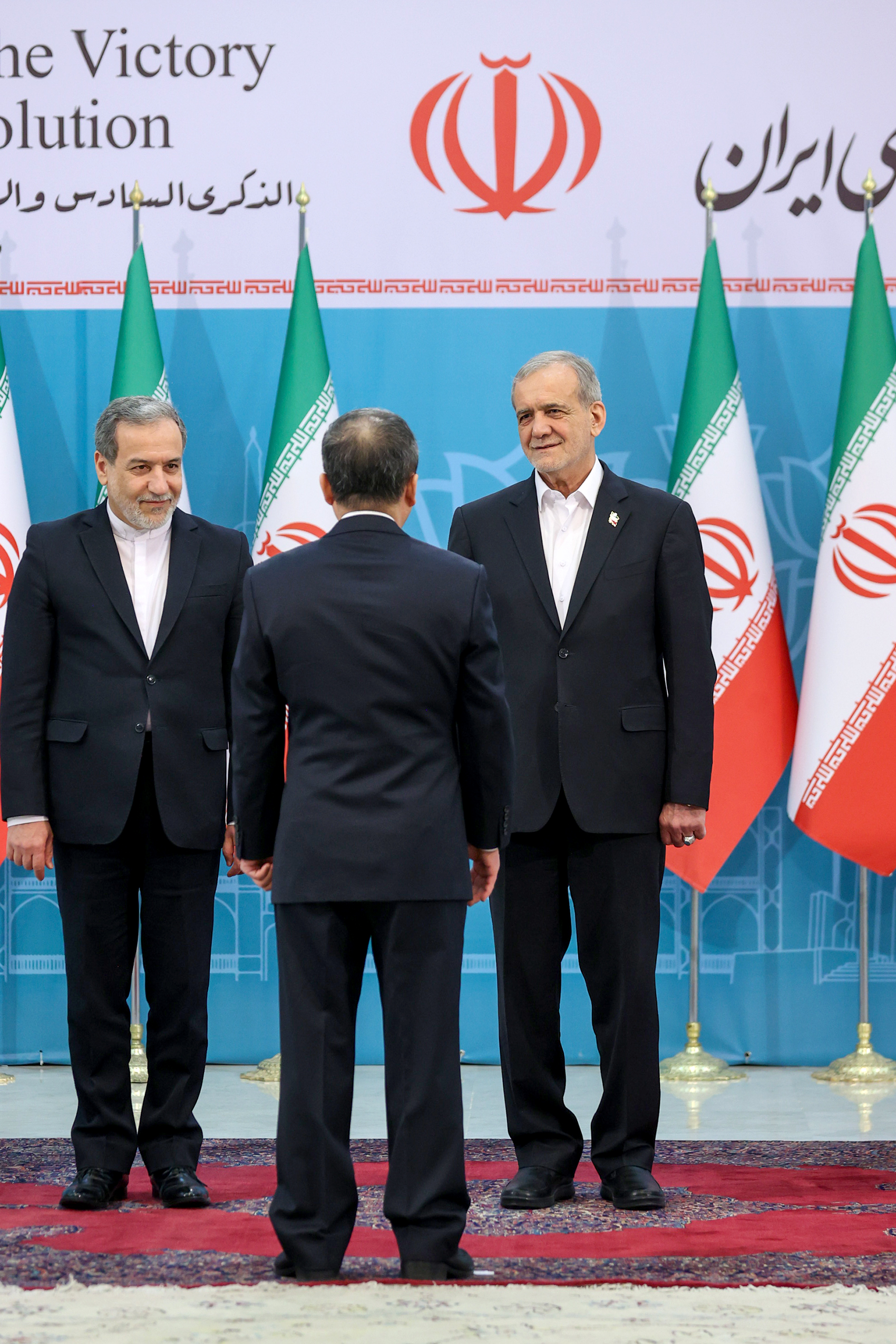 آئین سلام و تبریک سفرا و روسای نمایندگیهای بین المللی در کشورمان به دکتر پزشکیان به مناسبت فرارسیدن چهل و ششمین سالروز پیروزی انقلاب اسلامی عصر امروز پنجشنبه در سالن اجلاس سران برگزار شد.