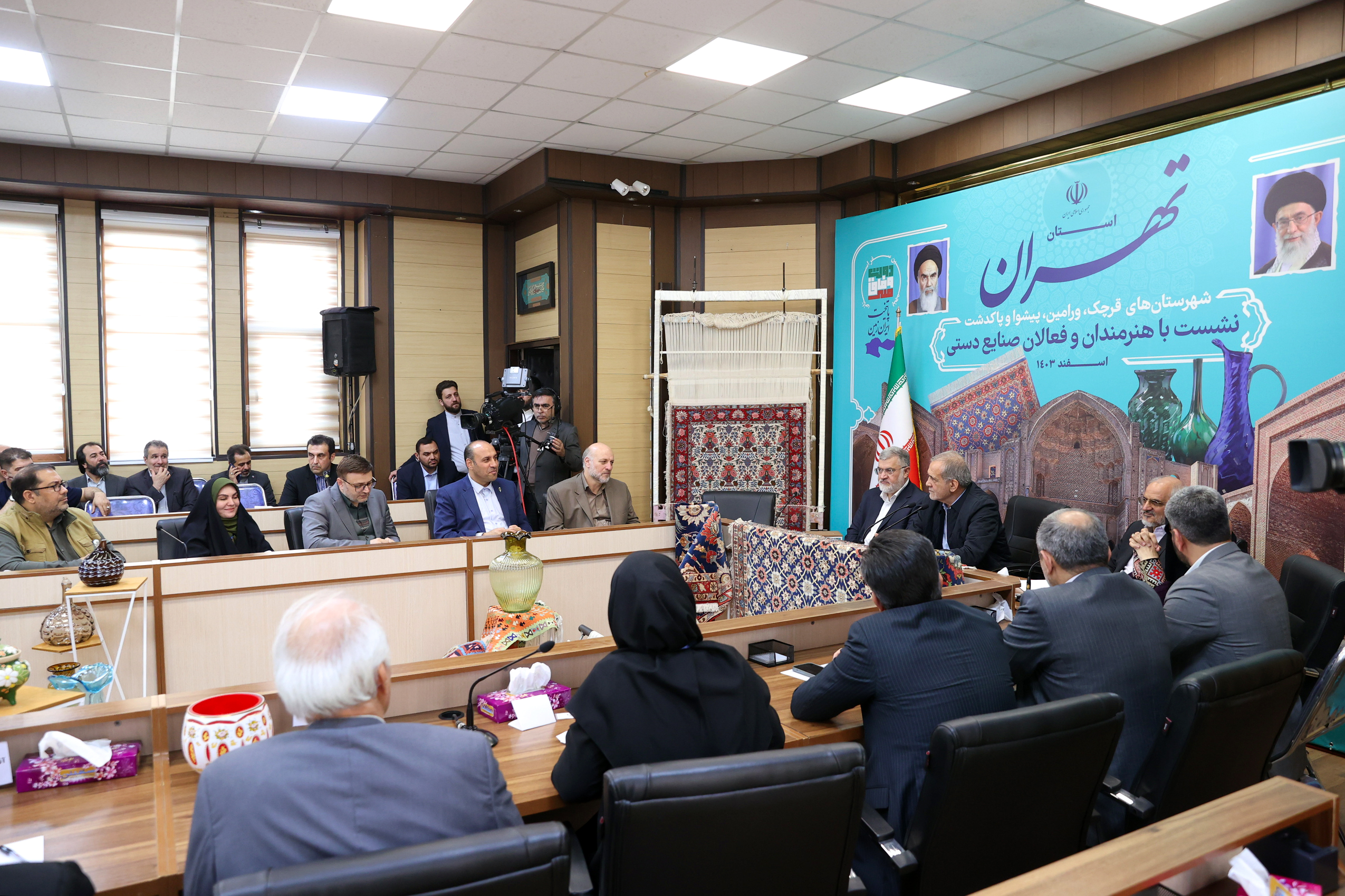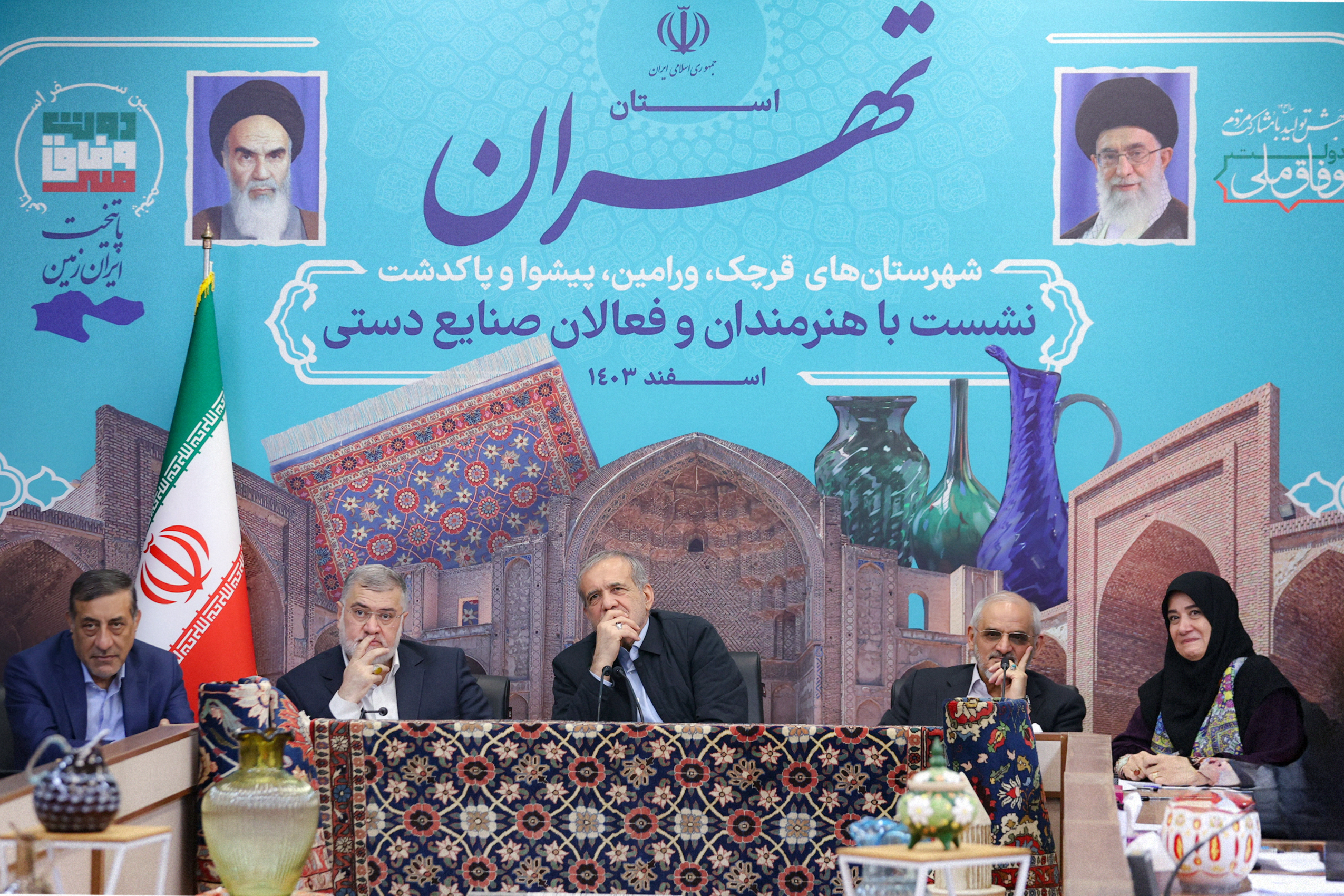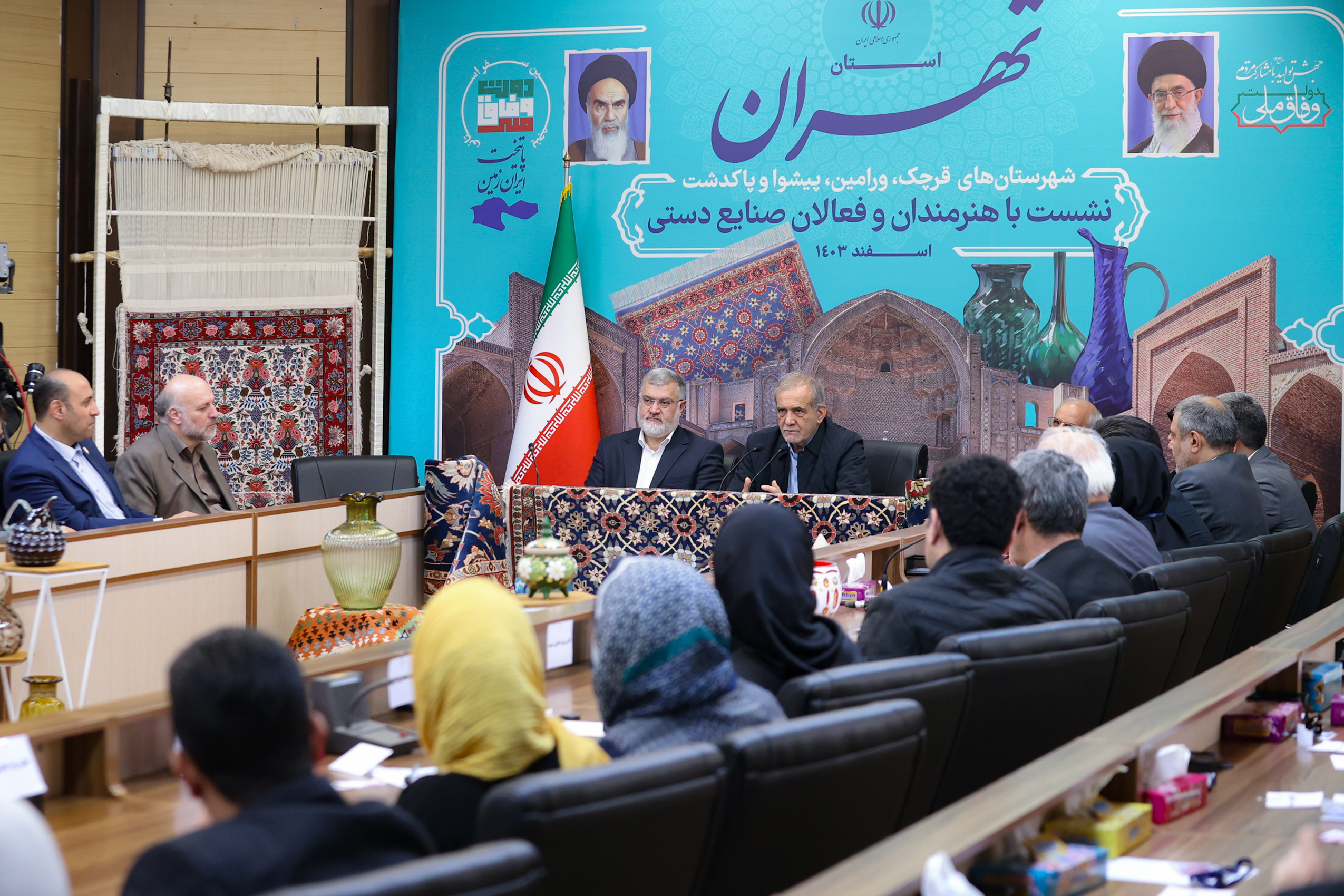 دکتر مسعود پزشکیان پیش از ظهر امروز پنجشنبه در ادامه برنامه‌های چهارمین بخش از سفر دولت وفاق ملی به شهرستان‌های استان تهران، که به مقصد شهرستان‌های قرچک، ورامین، پیشوا و پاکدشت برگزار می‌شود،با هنرمندان و فعالان صنایع دستی شهرستا‌ن‌های جنوب شرقی استان تهران، دیدار کرد. پس از شنیدن نظرات تعدادی از حاضران،به ایراد سخنرانی پرداخت.