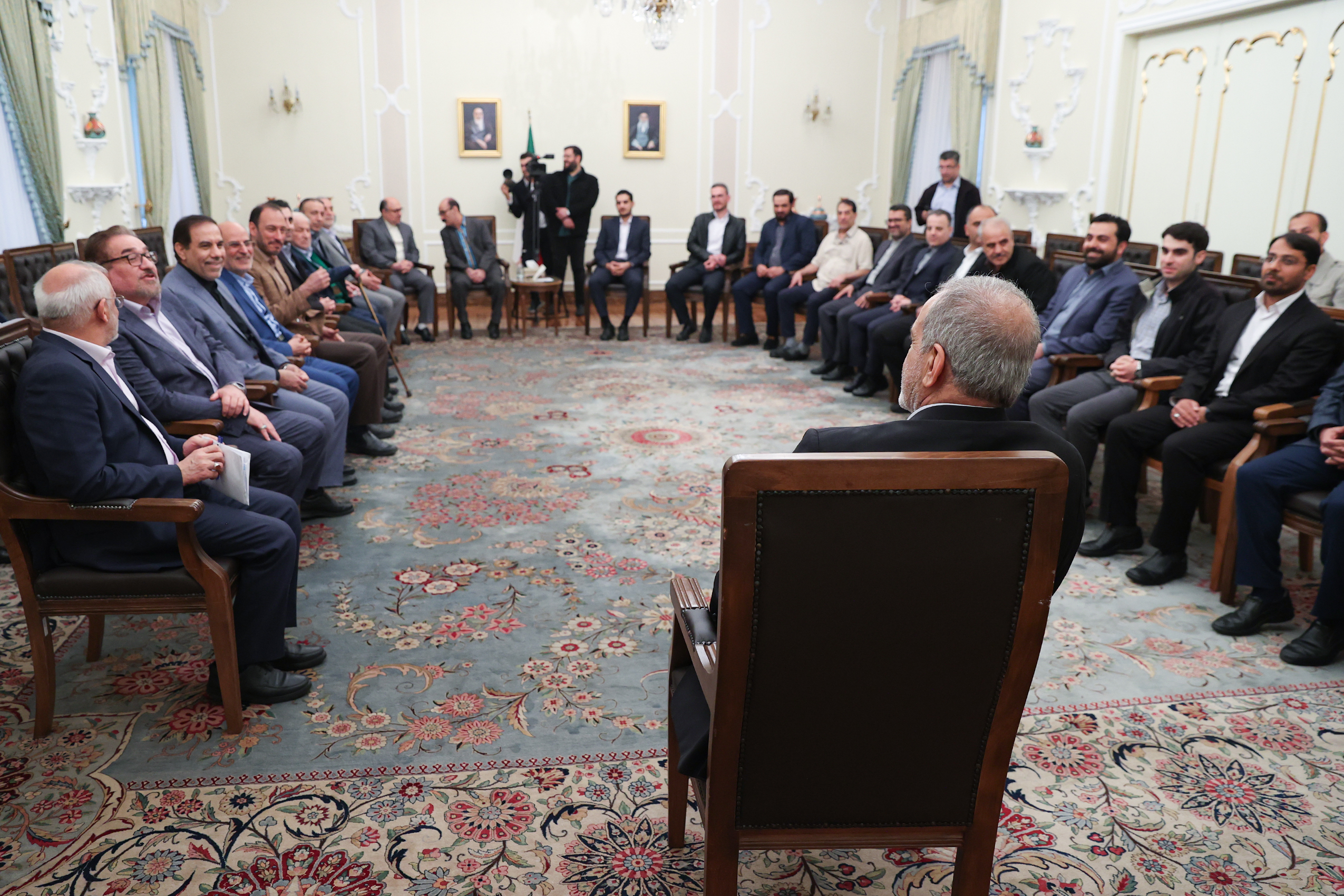 انتشار : شنبه ۱۶ فروردین, ۱۴۰۴ | ساعت: ۱۴:۲۰ دیدار با جمعی از وزرا، مدیران و مسئولان اجرایی کشور اشتراک جمعی از مدیران و کارگزاران کشوری و لشکری صبح امروز شنبه با حضور در نهاد ریاست جمهوری ضمن دیدار عیدانه با دکتر مسعود پزشکیان رئیس جمهور ، با او گفتگو کردند. بدون دیدگاه دیدگاهتان را بنویسید لغو پاسخبرای نوشتن دیدگاه باید وارد بشوید. آخرین مطالب بازدید رئیس جمهور از نمایشگاه فناوریهای روز آمد ایران چهارشنبه ۱۴ آبان, ۱۴۰۴ | ساعت: ۱۲:۳۱ بزرگداشت شهدای اقتدار سه شنبه ۱۷ تیر, ۱۴۰۴ | ساعت: ۱۶:۵۵ نشست رئیسجمهور با مسئولان استان گیلان سه شنبه ۱۷ تیر, ۱۴۰۴ | ساعت: ۱۷:۲۲ بازدید میدانی از مجتمع بندری آستارا سه شنبه ۱۷ تیر, ۱۴۰۴ | ساعت: ۱۷:۱۵ گفتوگو با «تاکر کارلسون» خبرنگار آمریکایی دوشنبه ۱۶ تیر, ۱۴۰۴ | ساعت: ۱۳:۴۸ حضور در آئین شام غریبان مسجد اوچدکان اردبیل دوشنبه ۱۶ تیر, ۱۴۰۴ | ساعت: ۱۲:۵۱ حضور در نماز ظهر عاشورا در مصلی امام خمینی (ره) تبریز یکشنبه ۱۵ تیر, ۱۴۰۴ | ساعت: ۱۸:۵۴ اقامه نماز ظهر عاشورا در مصلی تبریز یکشنبه ۱۵ تیر, ۱۴۰۴ | ساعت: ۱۳:۵۴ مراسم عزاداری تاسوعا یکشنبه ۱۵ تیر, ۱۴۰۴ | ساعت: ۱۹:۳۶ بازگشت دکتر پزشکیان از جمهوری آذربایجان جمعه ۱۳ تیر, ۱۴۰۴ | ساعت: ۱۹:۴۳ دیدار رؤسای جمهور ایران و ترکیه جمعه ۱۳ تیر, ۱۴۰۴ | ساعت: ۱۵:۱۵ دیدار رؤسای جمهور ایران و آذربایجان جمعه ۱۳ تیر, ۱۴۰۴ | ساعت: ۱۵:۲۲ هفدهمین اجلاس سران کشورهای سازمان همکاریهای اقتصادی اکو جمعه ۱۳ تیر, ۱۴۰۴ | ساعت: ۱۵:۲۷ دیدار نخستوزیر پاکستان با رئیسجمهور جمعه ۱۳ تیر, ۱۴۰۴ | ساعت: ۱۱:۰۷ دیدار رؤسای جمهور ایران و تاجیکستان جمعه ۱۳ تیر, ۱۴۰۴ | ساعت: ۰۹:۲۳