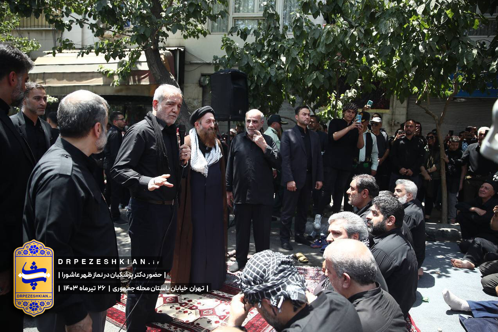 به گزارش پایگاه اطلاعرسانی دکتر مسعود پزشکیان، رئیسجمهور در خیابان باستان محلۀ جمهوری حضور یافت و در کنار مردم به عزاداری سالار شهدا حسین ابن علی (ع) پرداخت. سپس نماز ظهر عاشورا را در جمع مردم خواند.