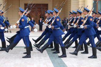 استقبال رسمی رئیسجمهوری آذربایجان از رئیسجمهور ایران در کاخ زاگولبا در باکو